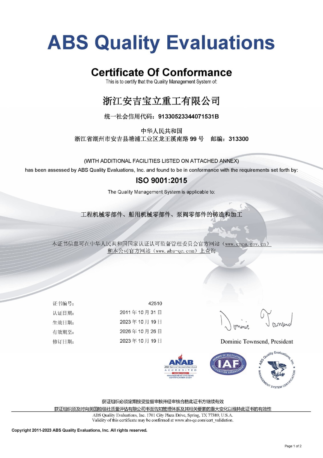ISO9001質(zhì)量管理體系證書